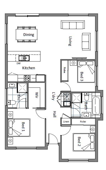 This home features 3 bedrooms and 2 bathrooms, is located in a neighbourhood with room for families to grow, provides space for a large shed, and includes a MyHome package to make your build more achievable.