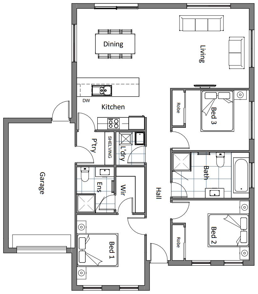 Pricing based on "M" class soil, LOW-BAL and maximum fall of under 500mm over the block. Pricing includes allowance for landscaping – gravel paths, garden beds, 15 plants, seeded lawn, fencing (as required) letterbox, clothesline, window furnishings, driveway, service connections and all documentation and council approvals. Image depicts style only. Standard facade included. Turn key items included.